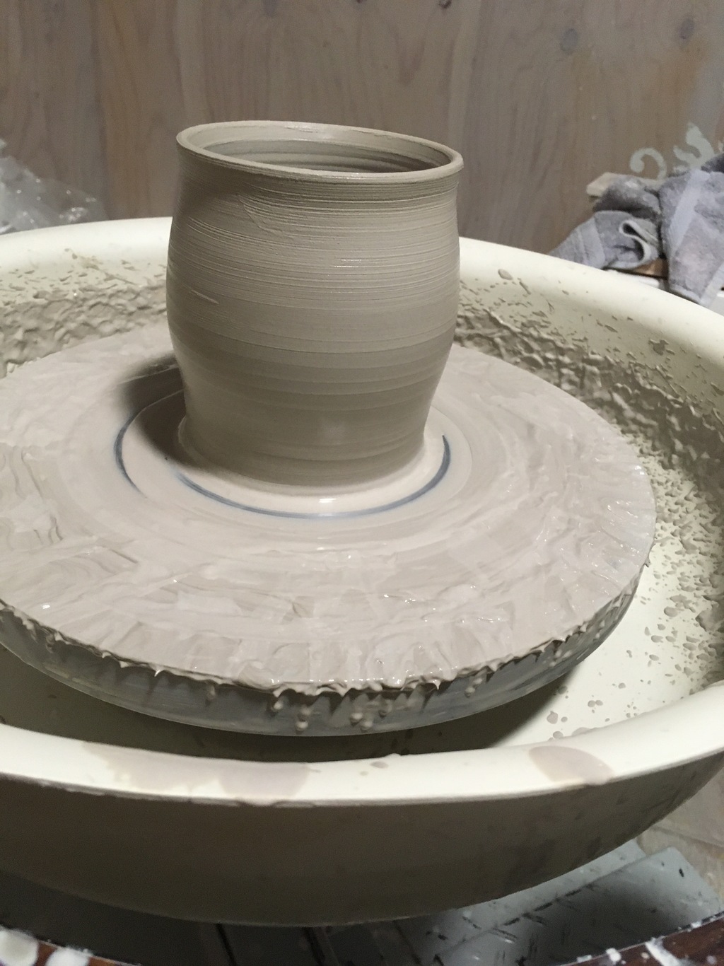 Pottery is made form raw clay, mine is from Medicine Hat, Alberta. I use 3 types of clay, the most common one I use is Stoneware Clay. It starts out as a "hunk" which is then formed into a shape; my favorite process is throwing on the wheel.